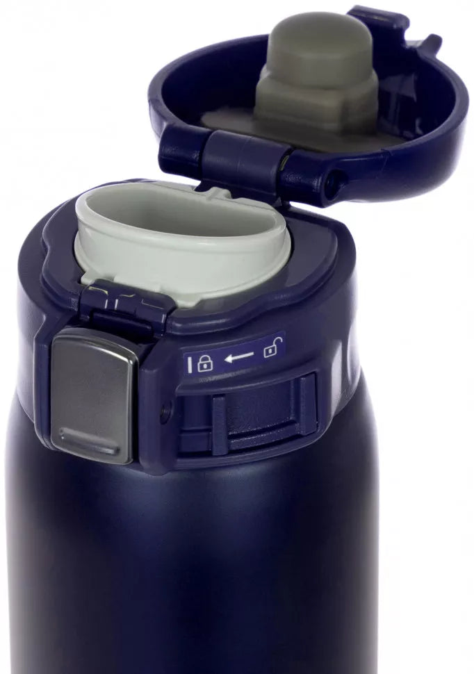 DOUBLE LOCK: button for opening and locking the lid. You can open the bottle with one hand - just swipe and press.